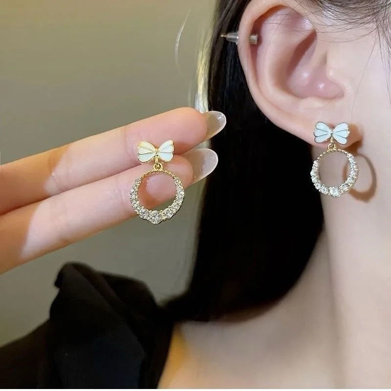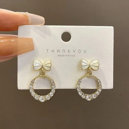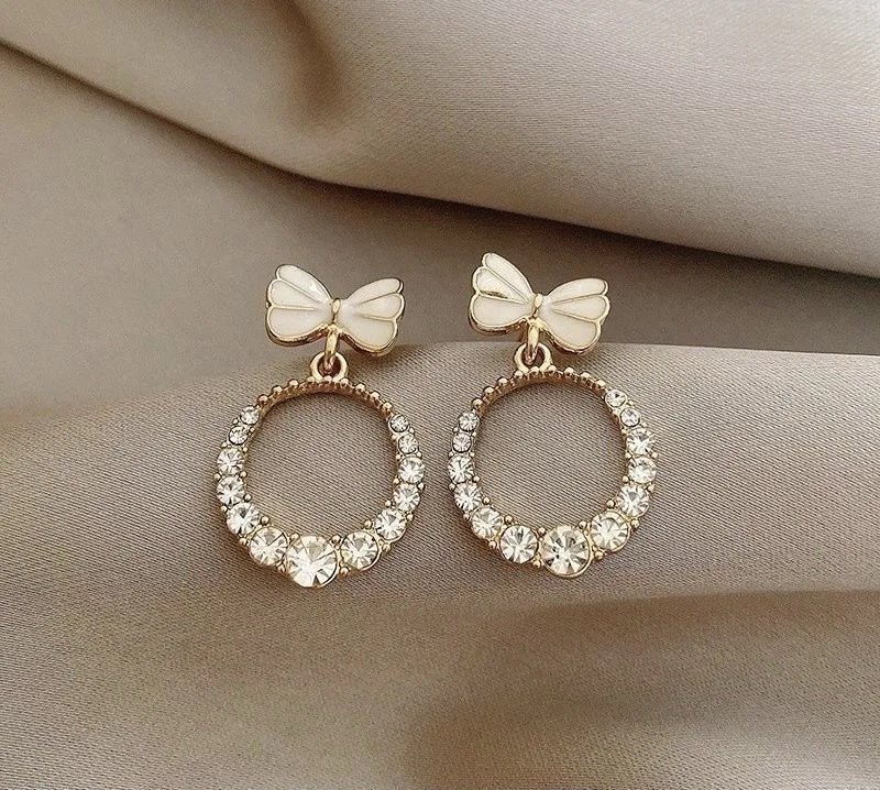 Charming earrings featuring a small bow design, perfect for adding a sweet and delicate touch to your outfit.