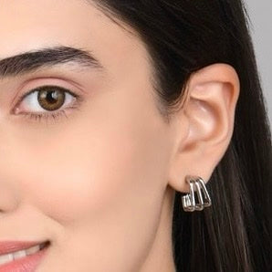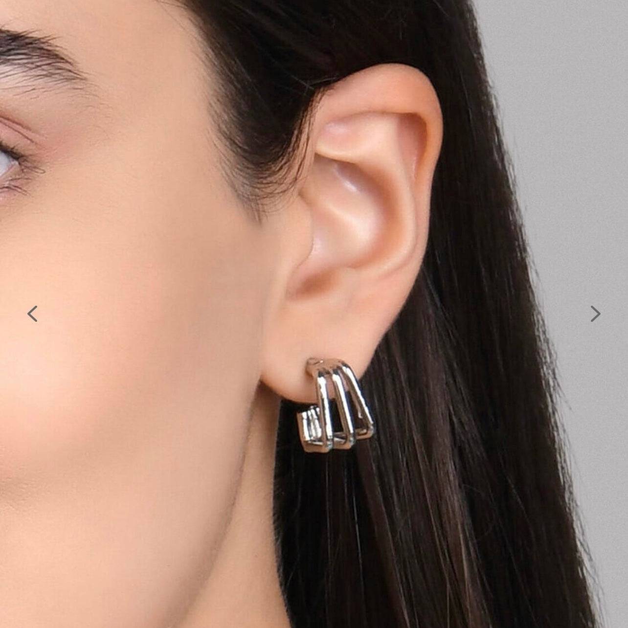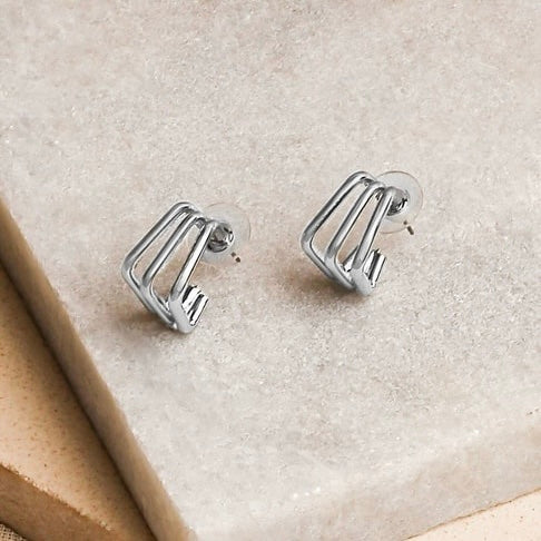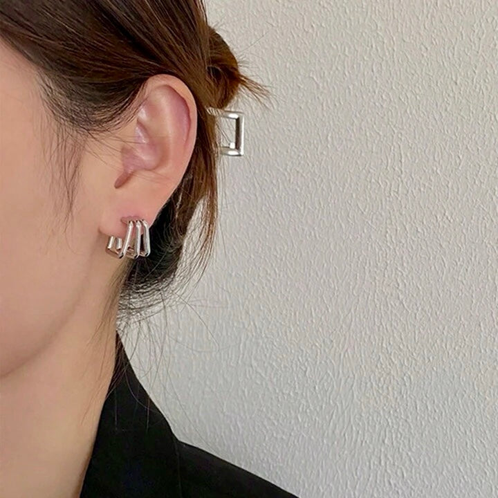 Enhance your style with these European and American-inspired square geometric earrings, featuring a chic and versatile metal design in silver color, perfect for complementing your workwear ensemble with a touch of modern elegance.