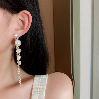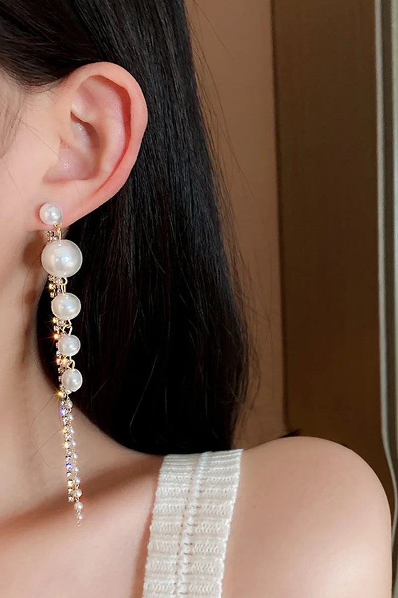 Shine bright with our Starlight Cascade Pearl Tassel Earrings, the epitome of style for European and American fashionistas. These earrings feature sparkling accents and graceful pearls, creating a dazzling accessory that effortlessly elevates your look. Make a statement with this stylish and sophisticated piece, showcasing your trendsetting flair in every sway of the tassel.
