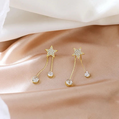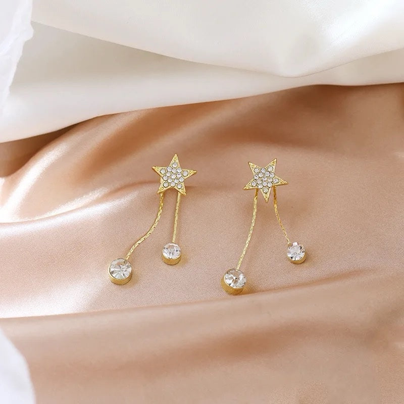 Illuminate your look with these diamond-studded star earrings, featuring celestial-inspired designs that sparkle with elegance and charm, perfect for adding a touch of celestial glamour to any outfit, day or night.