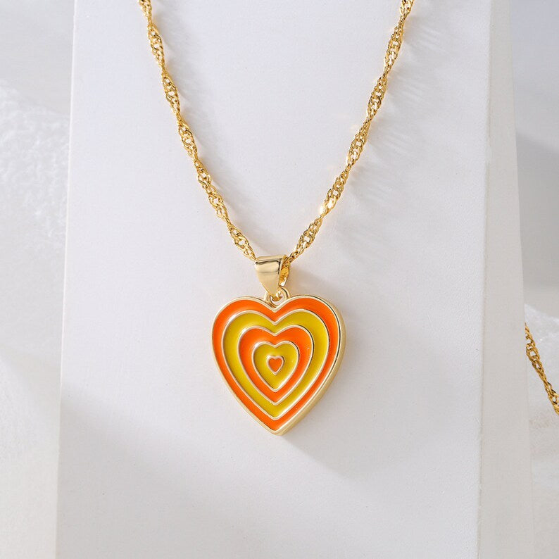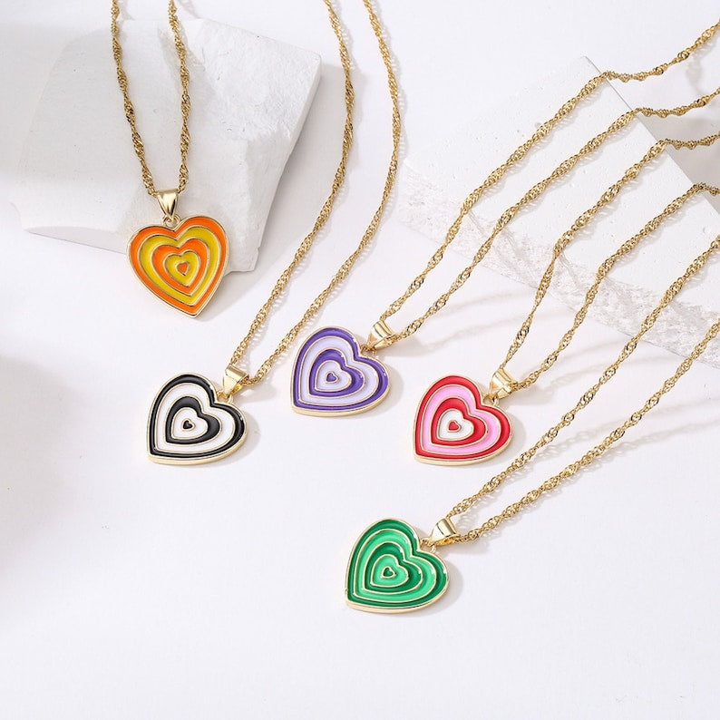 This delicate and elegant "Two Hearts Dainty Necklace" is the perfect accessory to express your love and affection. \n \nhe necklace features two interlocking hearts, one in a bright and vibrant color, and the other in a contrasting but complementary shade. The hearts are made of high-quality enamel and are set on a fine and durable chain made of sterling silver. \n \nThis necklace is perfect for everyday wear, adding a touch of romance and charm to any outfit. It makes a great gift for a loved one on a special occasion such as Valentine's Day, anniversary, or birthday.