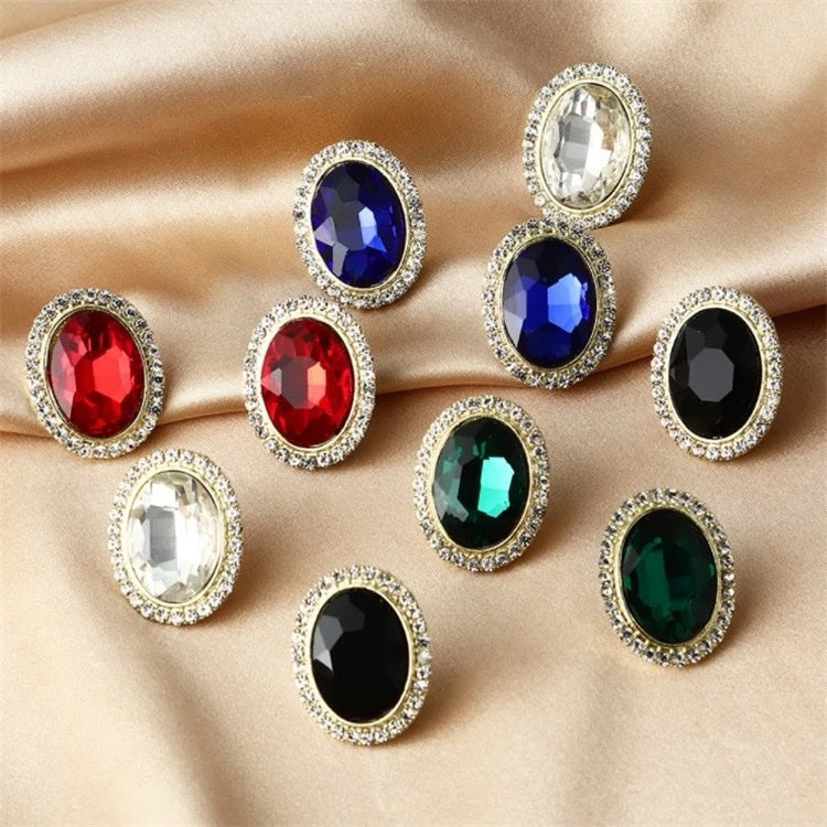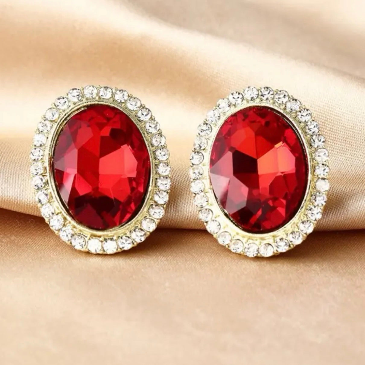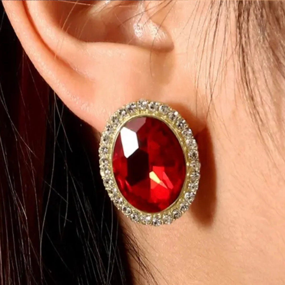 These exquisite vintage oval stud earrings feature a deep red crystal, beautifully framed by a halo of shimmering rhinestones. The elegant alloy setting adds a classic touch, making these earrings a perfect blend of sophistication and charm. Ideal for adding a pop of color and a touch of timeless elegance to both formal and casual ensembles, these earrings are a must-have for any jewelry lover.