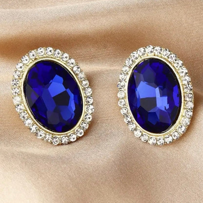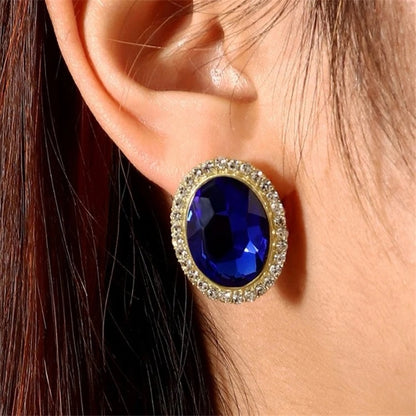 Vintage Oval Royal Blue Crystal Stud Earrings